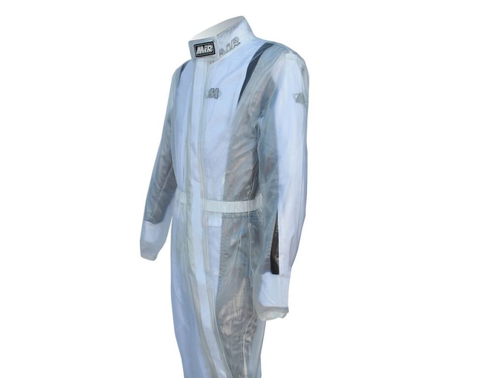 Combinaison de pluie en tissu PVC renforcé (épaisseur 2,2 mm) Ultra transparente. Coutures renforcées d’un double ruban de fil. Fermeture devant : double glissière et Velcro. Facile à porter et à enlever grâce à l’élastique placé dans les zones des poignets et des chevilles. Doté d’un sac pratique avec poignées pour le ranger après chaque utilisation