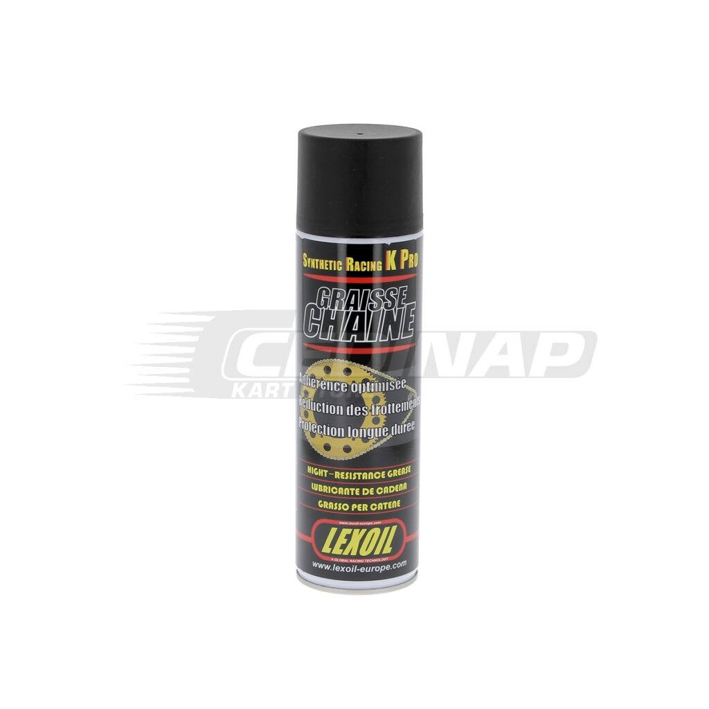 Le lubrifiant pour chaines de LEXOIL est un produit à très hautes performances. Il a été spécialement développé pour la compétition et il garantit une lubrification toujours optimum et durable. Particulièrement adhésif, il résiste à l´eau et à la vapeur. Sa composition à base de polymères de synthèse et d’additifs anti-usure prolonge la durée de vie de la chaine. Il conditionne un film lubrifiant et protecteur qui réduit les frottements et évite tout grippage. Il est également parfaitement adapté à la lubrification des chaines à joints O-ring.